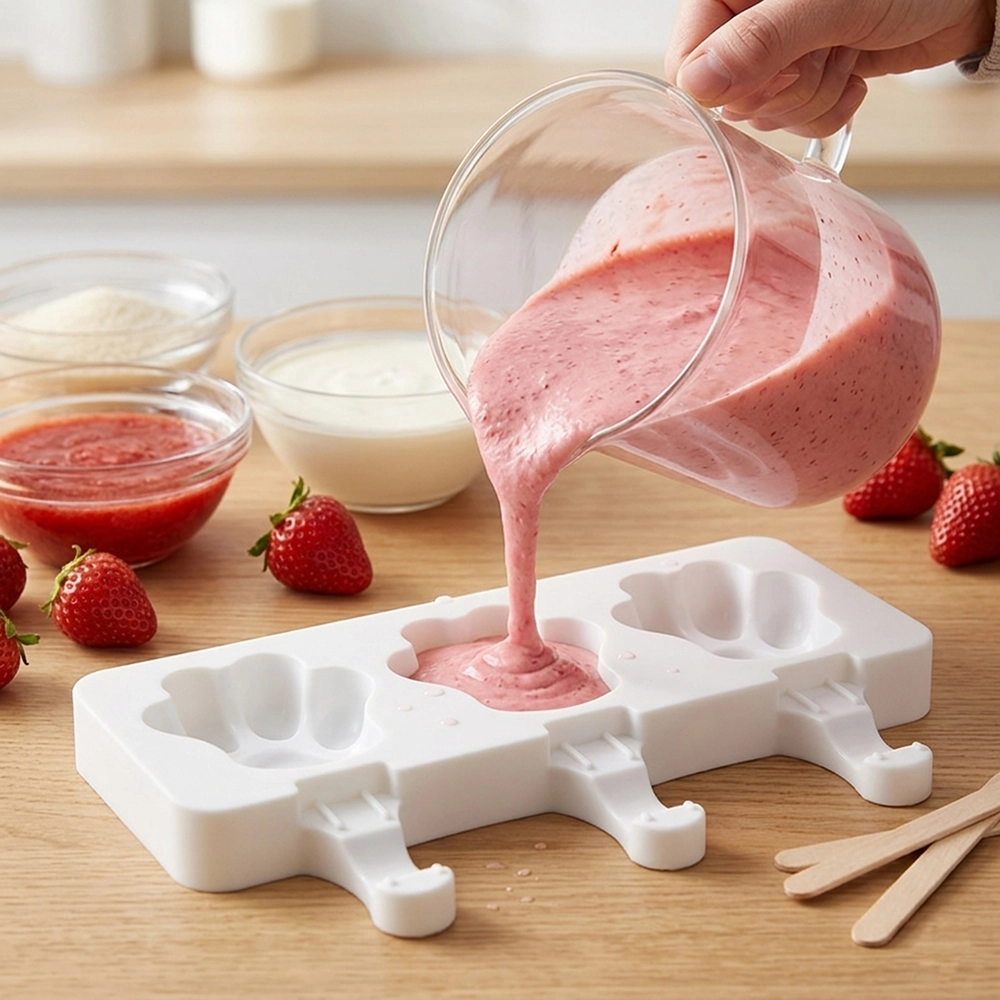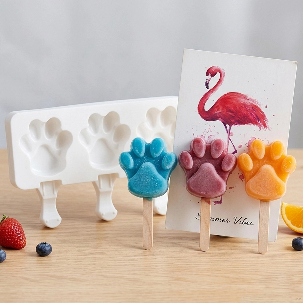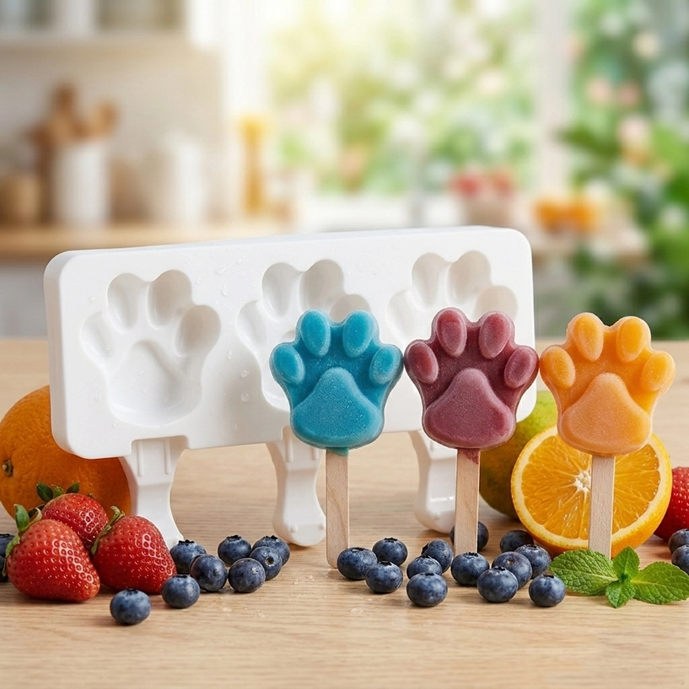 Μια πρωτότυπη και διασκεδαστική φόρμα σιλικόνης για παγωτό με 3 θήκες σε σχήμα πατούσας, ιδανική για σπιτικά παγωτά που ξεχωρίζουν. Το χαριτωμένο σχέδιο την κάνει τέλεια επιλογή για παιδιά αλλά και για ιδιαίτερες καλοκαιρινές δημιουργίες.