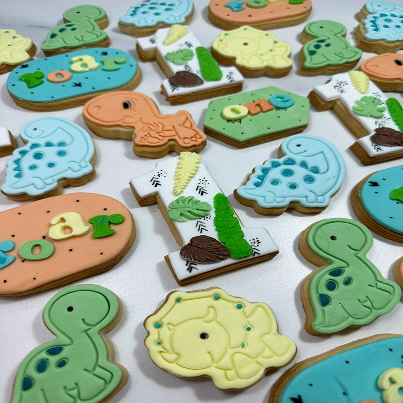 Καλούπι Cookies Δεινοσαυράκια. 8 σετ με καλούπι και σφραγίδα σε διάφορα σχέδια από δεινοσαυράκια.