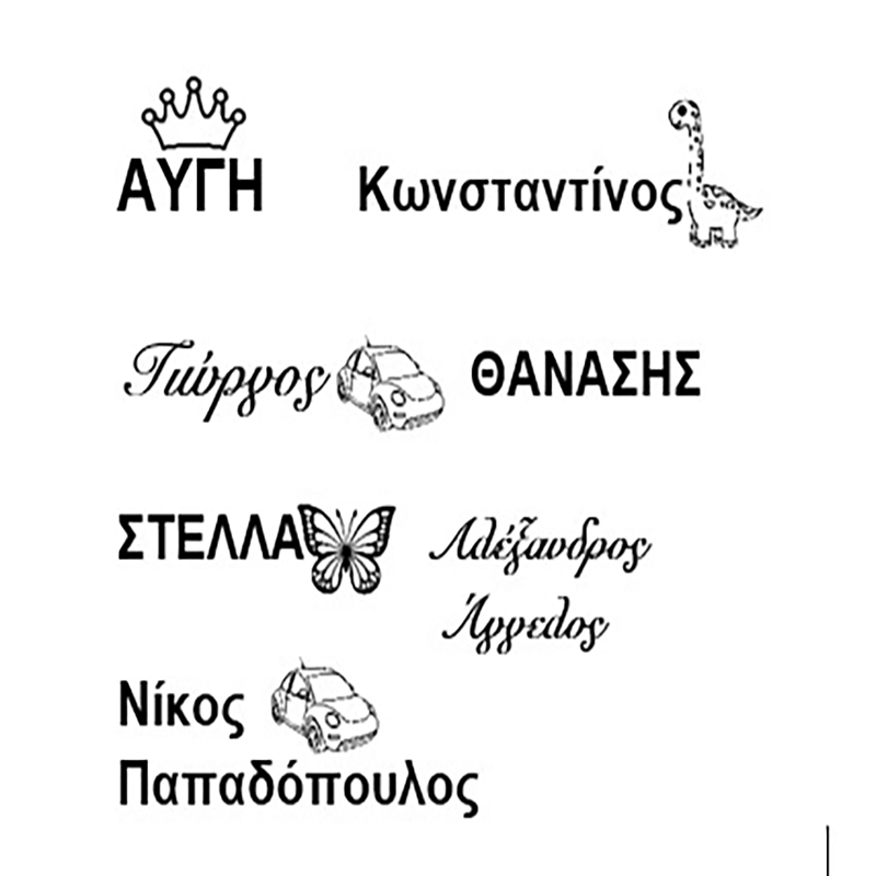 Σφραγίδα με όνομα, με μελάνι υφασμάτων, κατάλληλο για να “τυπώνεται” το όνομα του παιδιού στα ρούχα του και σε όποια υφασμάτινη επιφάνεια χρειάζεται. Εσείς επιλέγετε το όνομα ή/και το επώνυμο του παιδιού, εάν επιθυμείτε κεφαλαία ή μικρά γράμματα, το σχέδιο και τα υπόλοιπα τα αφήνετε σε εμάς! Ήρθε η ώρα να ξεχωρίσετε τα ρούχα του παιδιού σας, για το σχολείο, τη βόλτα ή για όποια άλλη δραστηριότητα. Αυτή η σφραγίδα θα σας λύσει τα χέρια, καθώς το όνομα “τυπώνεται” γρήγορα και εύκολα στο σπίτι σας! Η διαδικασία είναι εύκολη για εσάς, καθότι ανοίγετε το κάτω μέρος της σφραγίδας και πιέζεται το όνομα επάνω στην υφασμάτινη επιφάνεια. Όταν τελειώσετε το κλείνετε και έτοιμο.