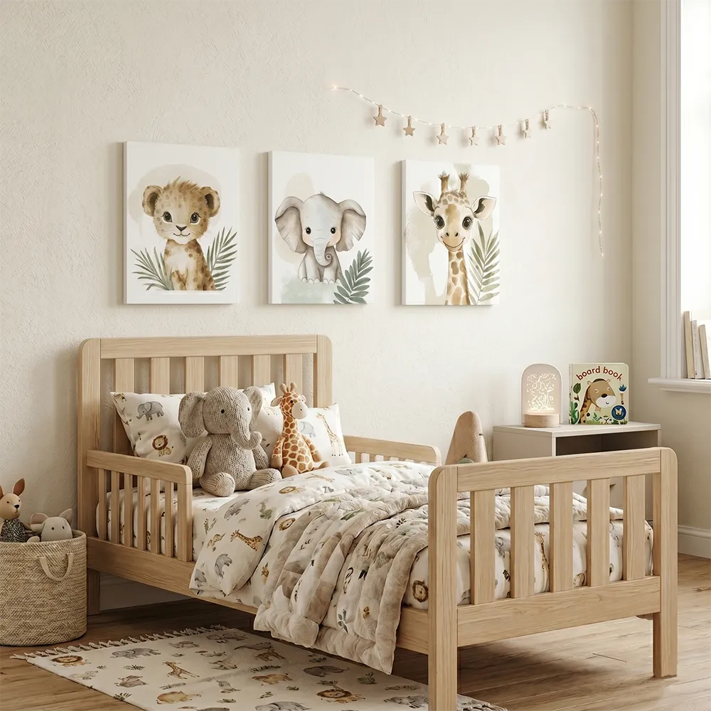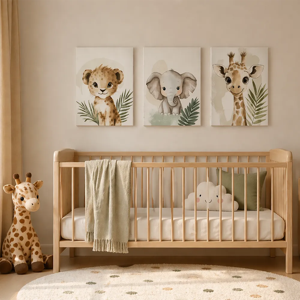 Οι παιδικοί πίνακες τοίχου με ζωάκια safari είναι ιδανικοί για να δημιουργήσεις έναν ζεστό και χαρούμενο χώρο για το παιδί σου.