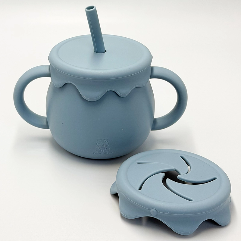 Το ποτήρι διαθέτει δύο χερούλια για εύκολο κράτημα από τα παιδιά και έρχεται με δύο διαφορετικά καπάκια, ένα με καλαμάκι και ένα για αποθήκευση σνακ.