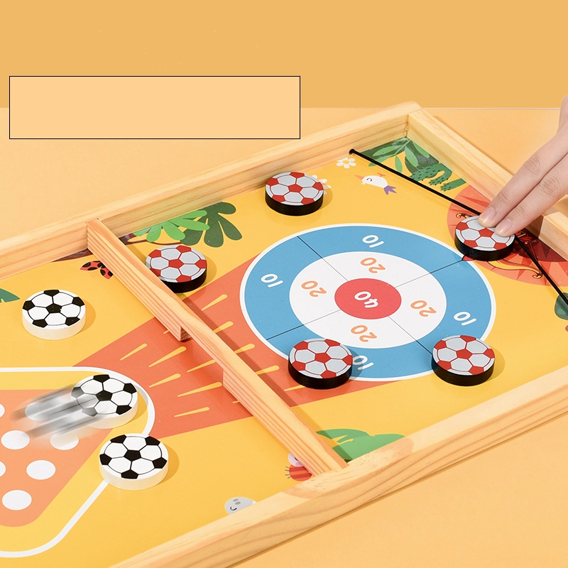 Ανακαλύψτε τη νέα ξύλινη πρόκληση για παιδιά με τέσσερα παιχνίδια σε ένα ταμπλό! Τεντώστε το λάστιχο και προσπαθήστε να εκτοξεύσετε τα πούλια σας στην πλευρά του αντιπάλου ή να συλλέξετε περισσότερους πόντους, στέλνοντας τα στα κατάλληλα σημεία του ταμπλό. Με το ίδιο λάστιχο προσπαθήστε να ρίξετε τις κορύνες.